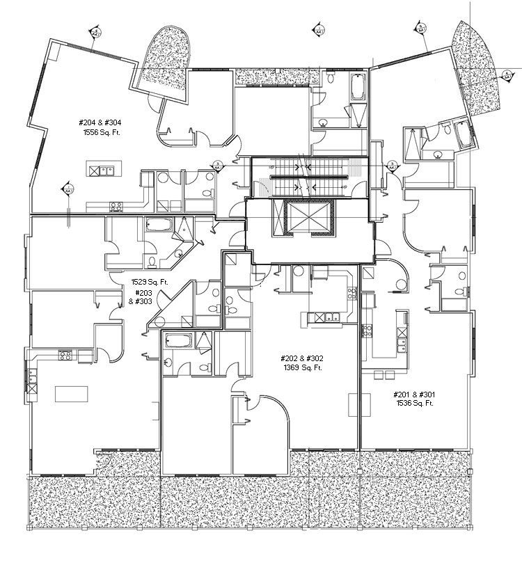 Only Units 202, 203 and 304 are still available for purchase. Get a detailed, printable file by clicking on the layout below.